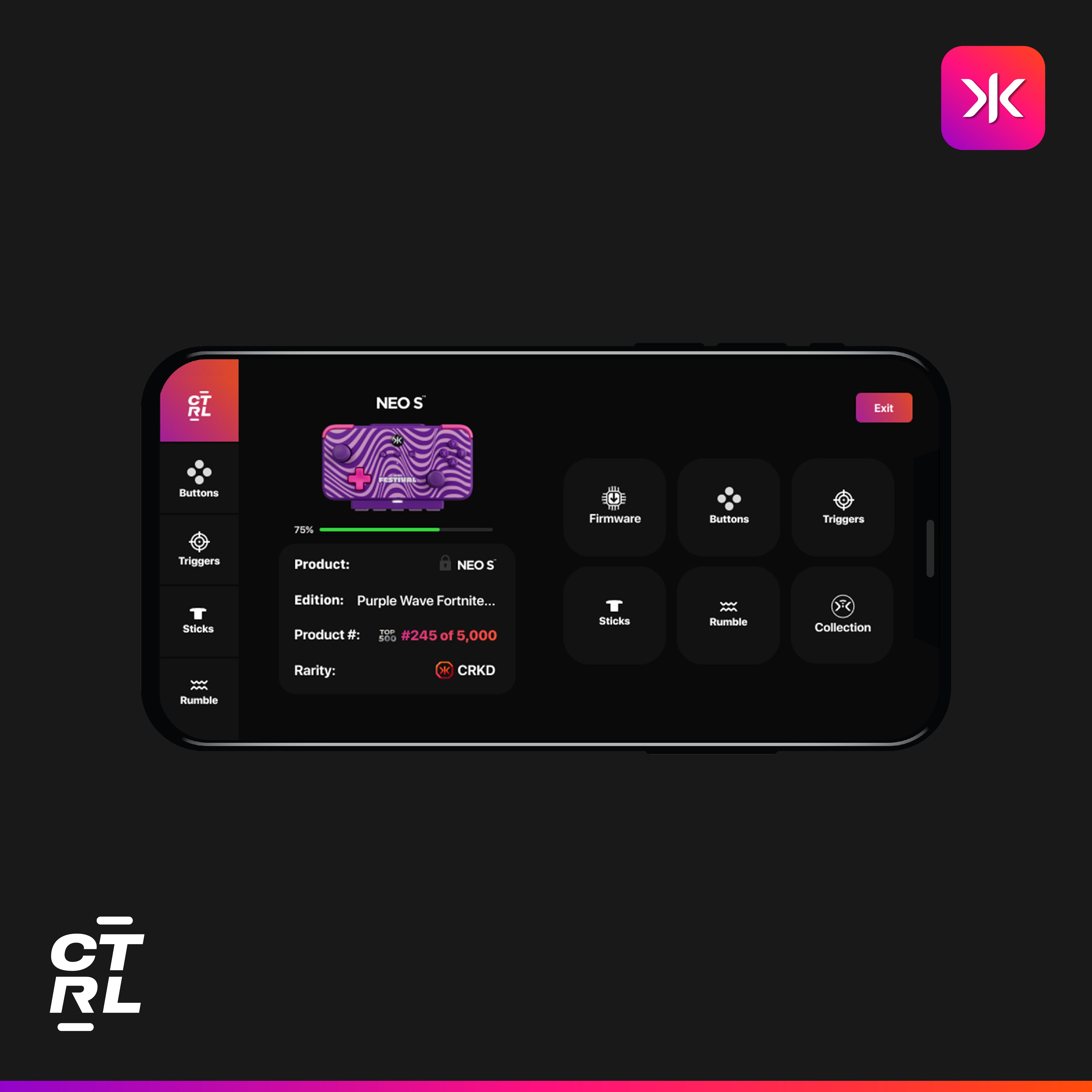 Bluetooth enabled products such as the NEO S are compatible with CRKD CTRL, an app feature that unlocks control of the customizable features of your controller(s).