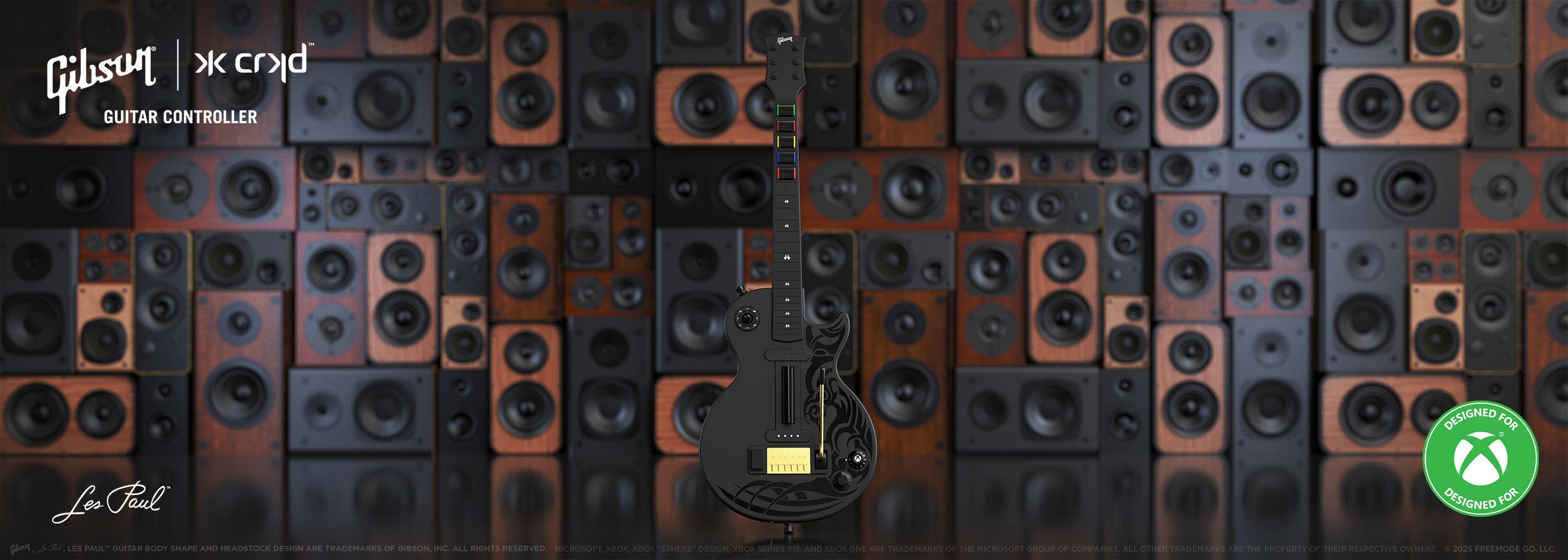 Take center stage and rock the spotlight with the CRKD x Gibson® Black Tribal Encore Edition Les Paul™ Guitar Controller, officially licensed by Xbox®. Compatible with Xbox Series X|S, Xbox One, PC, PC handhelds, and Android® devices including Smart TVs, tablets, mobile devices, and cloud streaming services such as Xbox Cloud Gaming and Luna®.
