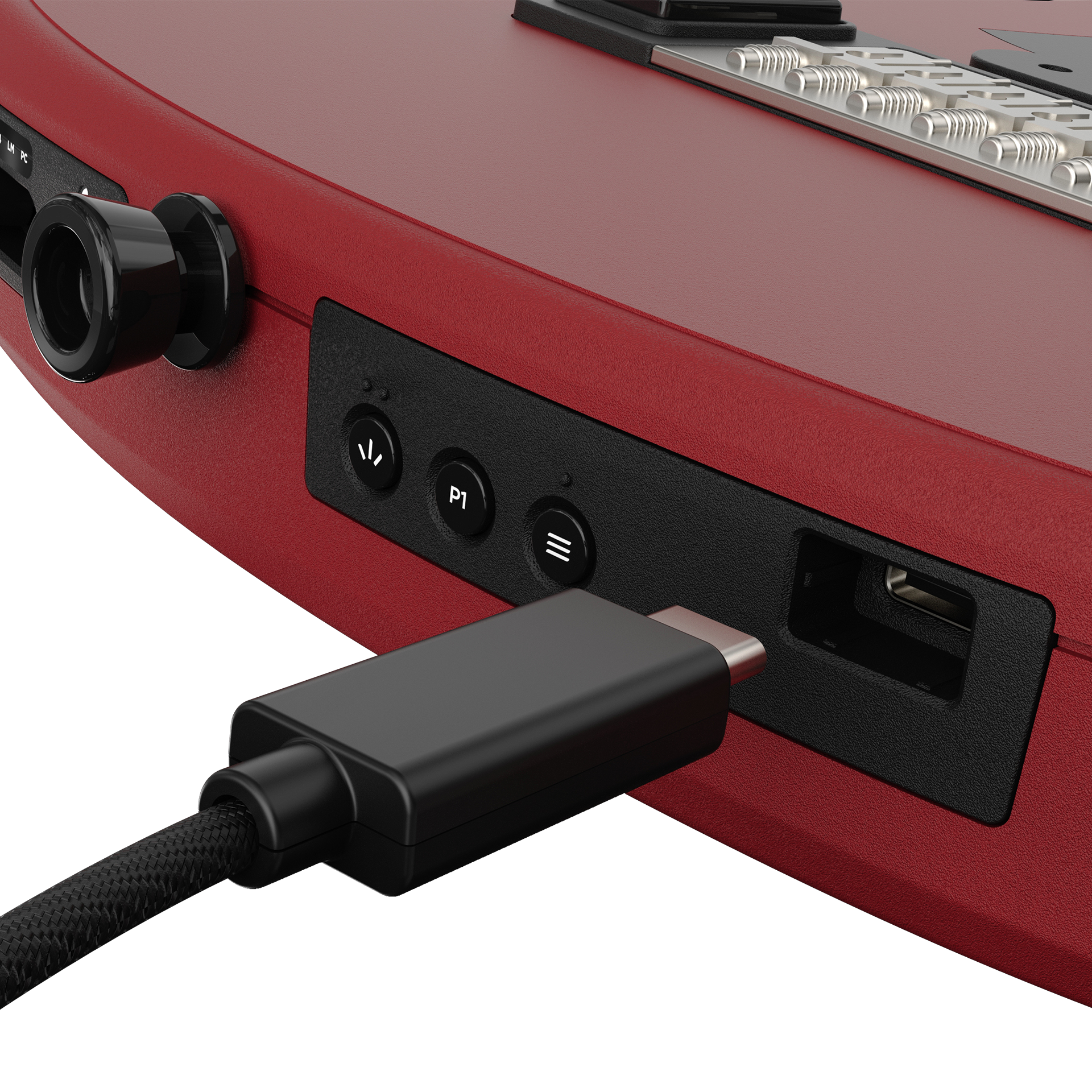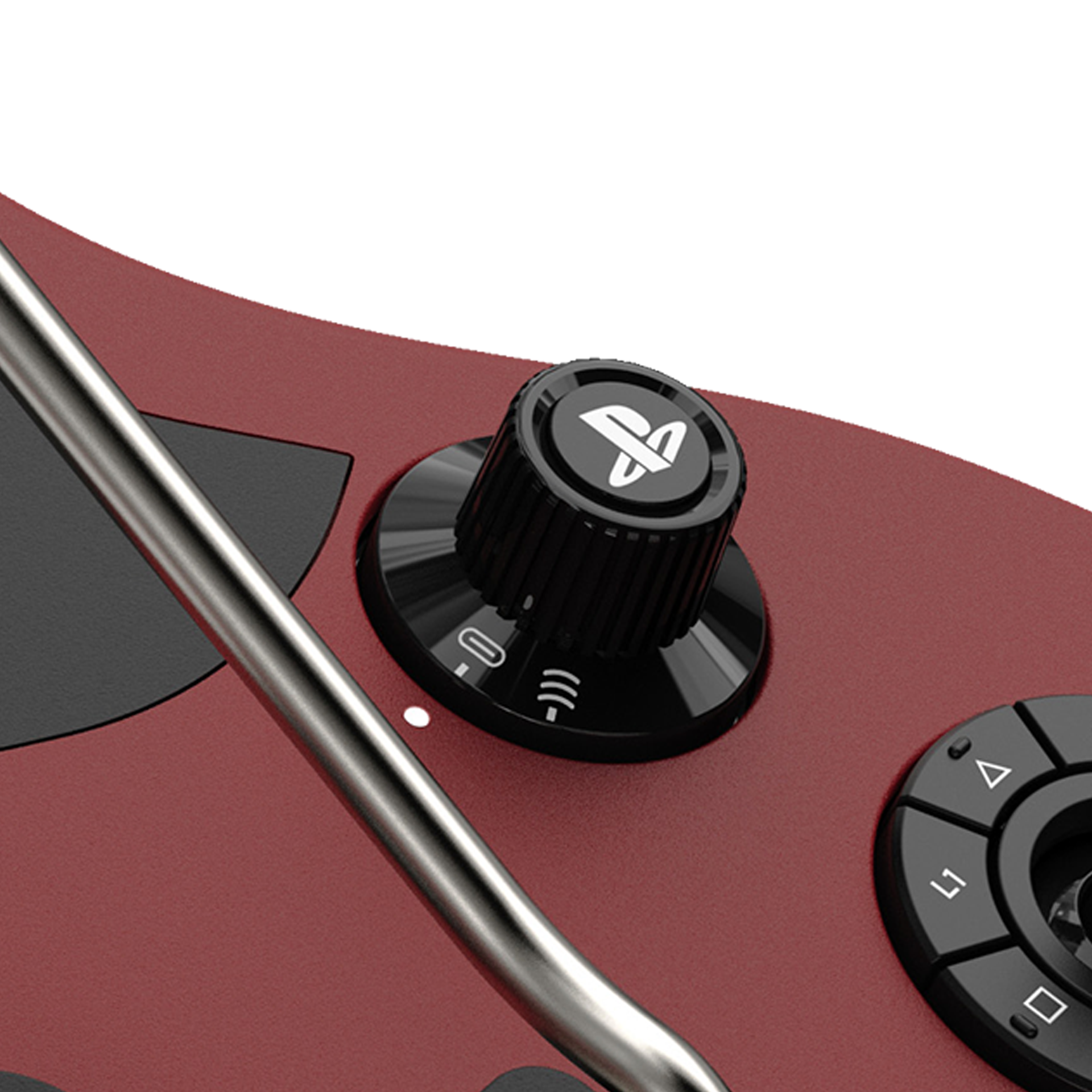 An innovative eight-button Navigation Hub is seamlessly integrated into the design. At its center, a left analog stick ensures effortless menu navigation, while an authentic guitar knob houses the right analog stick.