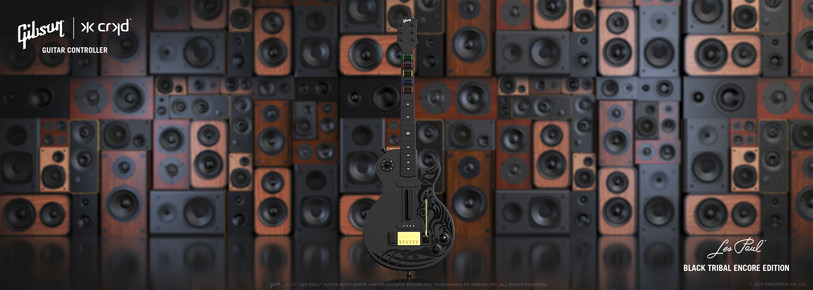 Take center stage and rock the spotlight with the CRKD x Gibson® Black Tribal Encore Edition Les Paul™ Guitar Controller, designed for PC, PC handhelds, Nintendo® Switch™, Android® devices, including Smart TVs, tablets, mobile devices, and cloud streaming services such as Xbox® Cloud Gaming and Luna®.