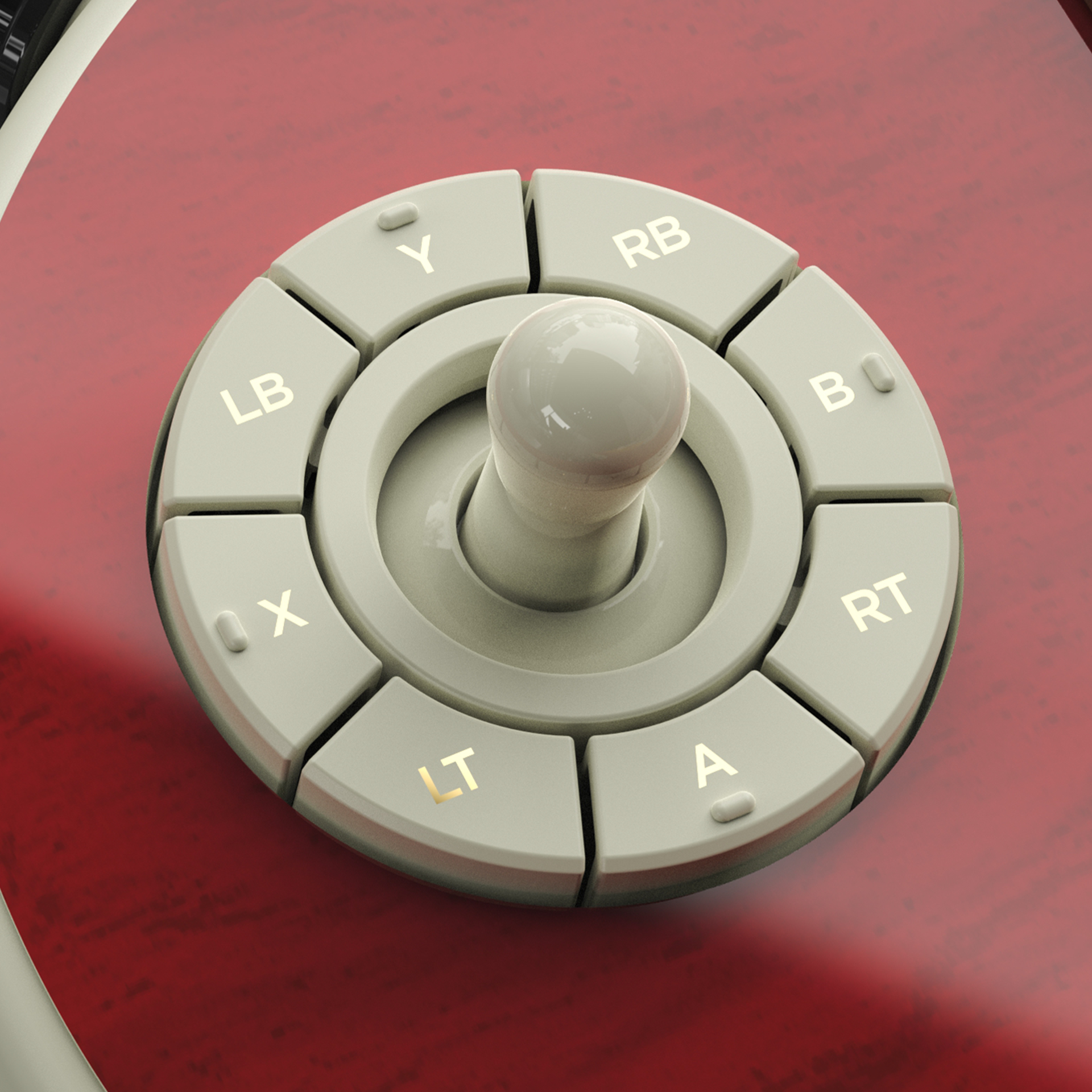 An innovative eight-button Navigation Hub is seamlessly integrated into the design. At its center, a left analog stick ensures effortless menu navigation, while an authentic guitar knob houses the right analog stick.