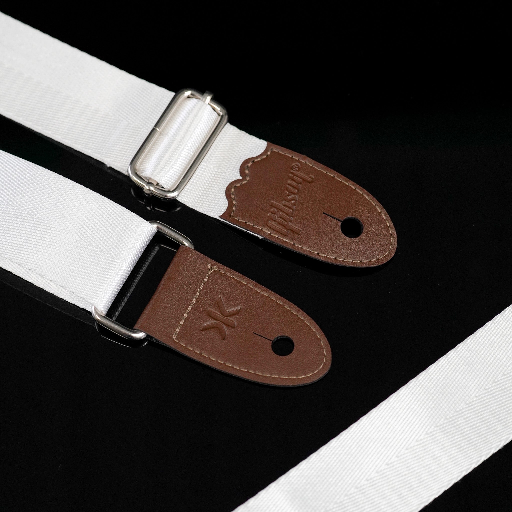 The bundle also includes a co-branded Gibson x CRKD custom shoulder strap crafted with off-white fabric and brown leather ends.
