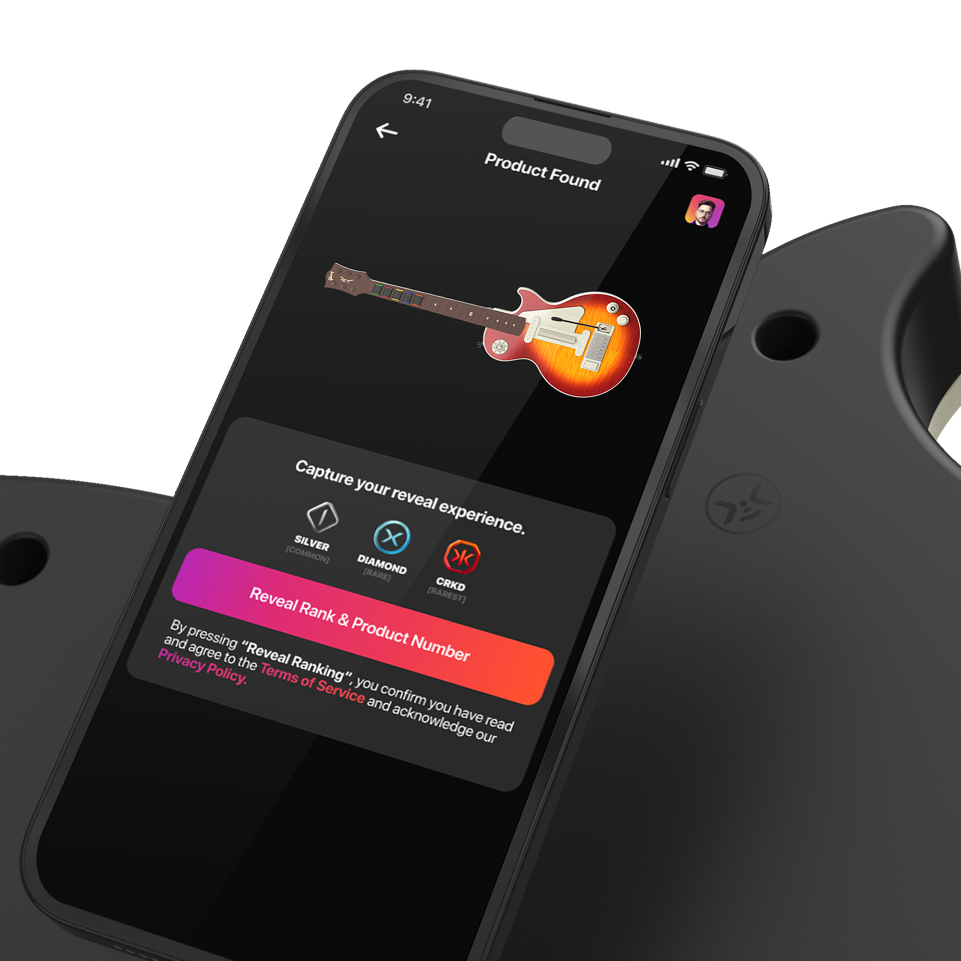 Unlock customization through the CRKD CTRL App with button remapping, strum sensitivity, RGB lighting, tilt settings, and firmware updates. Register your guitar to the True Collection System to reveal its unique product number and rarity rank.