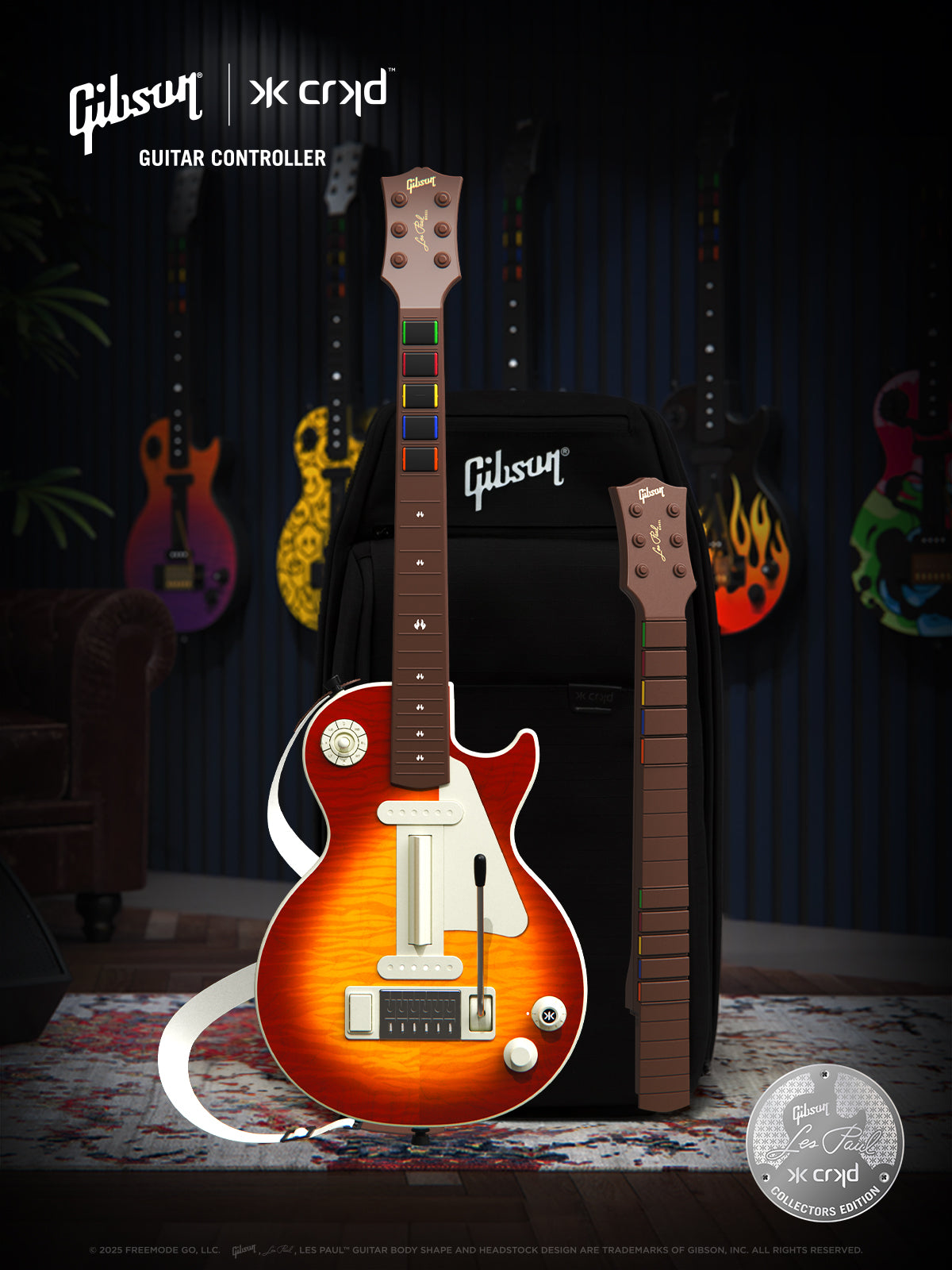 All items are housed in a premium co-branded CRKD x Gibson backpack, purpose-built for your guitar controller and accessories!