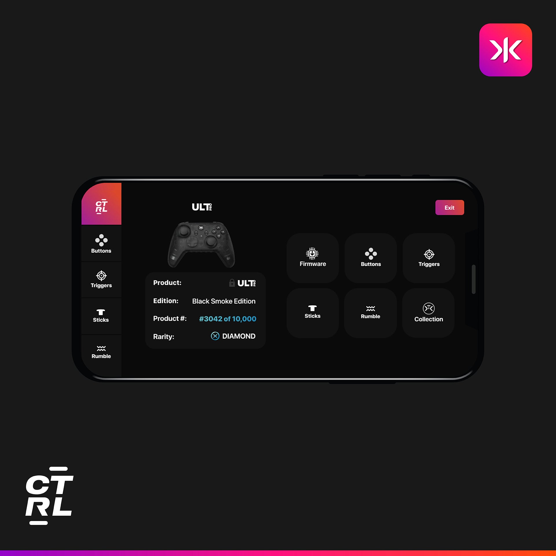 Each CRKD product is compatible with our "True Collection System," a key feature of the CRKD App available for iOS™ and Android®. Users can easily tap their mobile device to their product to discover the product number and rarity rank, enjoy a guided digital reveal experience, and register their controller within their secure collection of ever-expanding CRKD products.