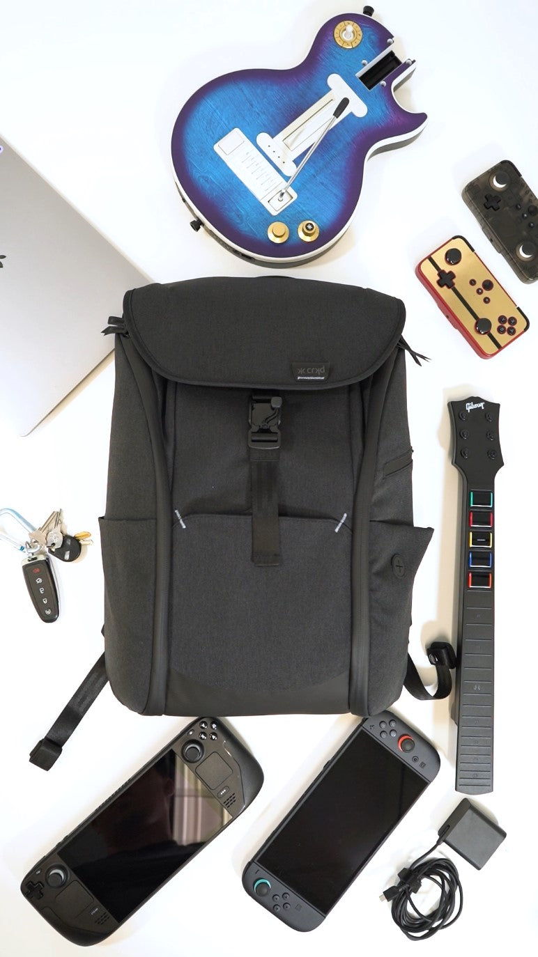 Compatible with a wide range of today’s most popular handheld consoles, the spacious main compartment even stows the CRKD guitar controller with ease.